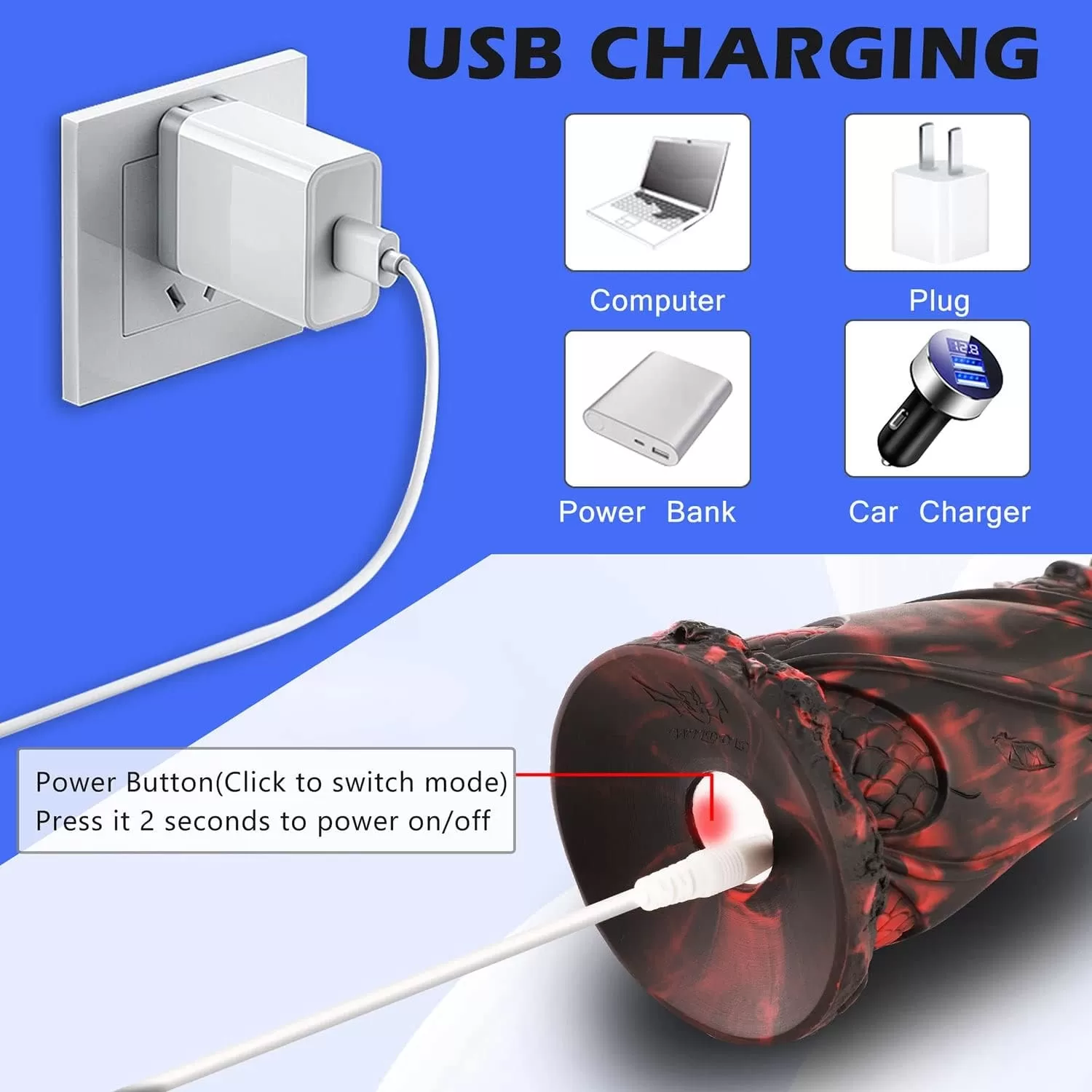 3 WAYS EASY TO CONTROL - You can change vibrations of this dragon dildo for woman by click the manual switch of the button, remote controller and Wildolo APP of smart phone