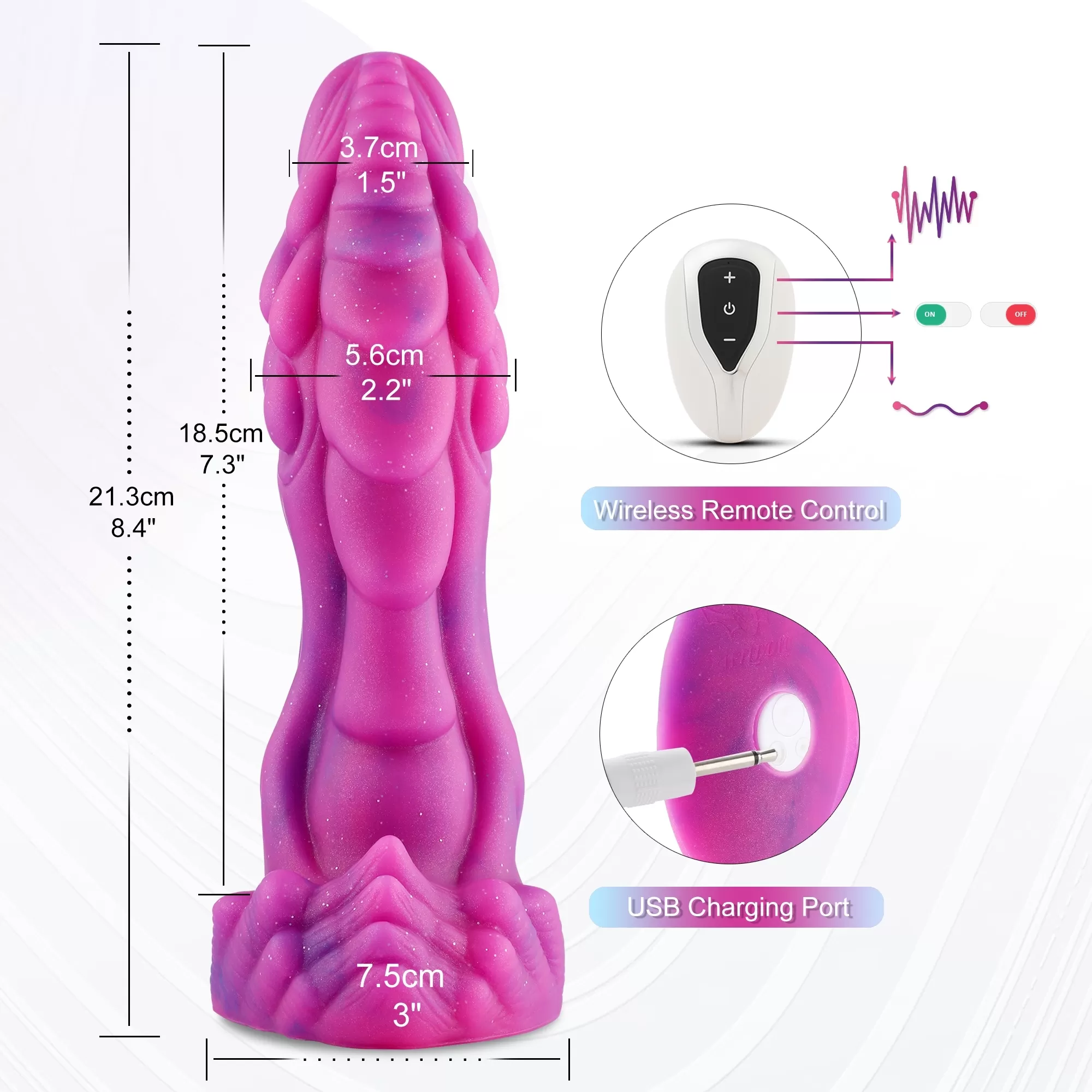 【Safe Silicone & 100% Waterproof 】 The monster dildo is made of body-safe and Phthalate-Free silicone. With a unique head and sensation-filled textures, you will find an incredible stretching sensation you won’t soon forget. The strong suction cup clitoral vibrator dildo can be used in any smooth surface for hands-free fun.