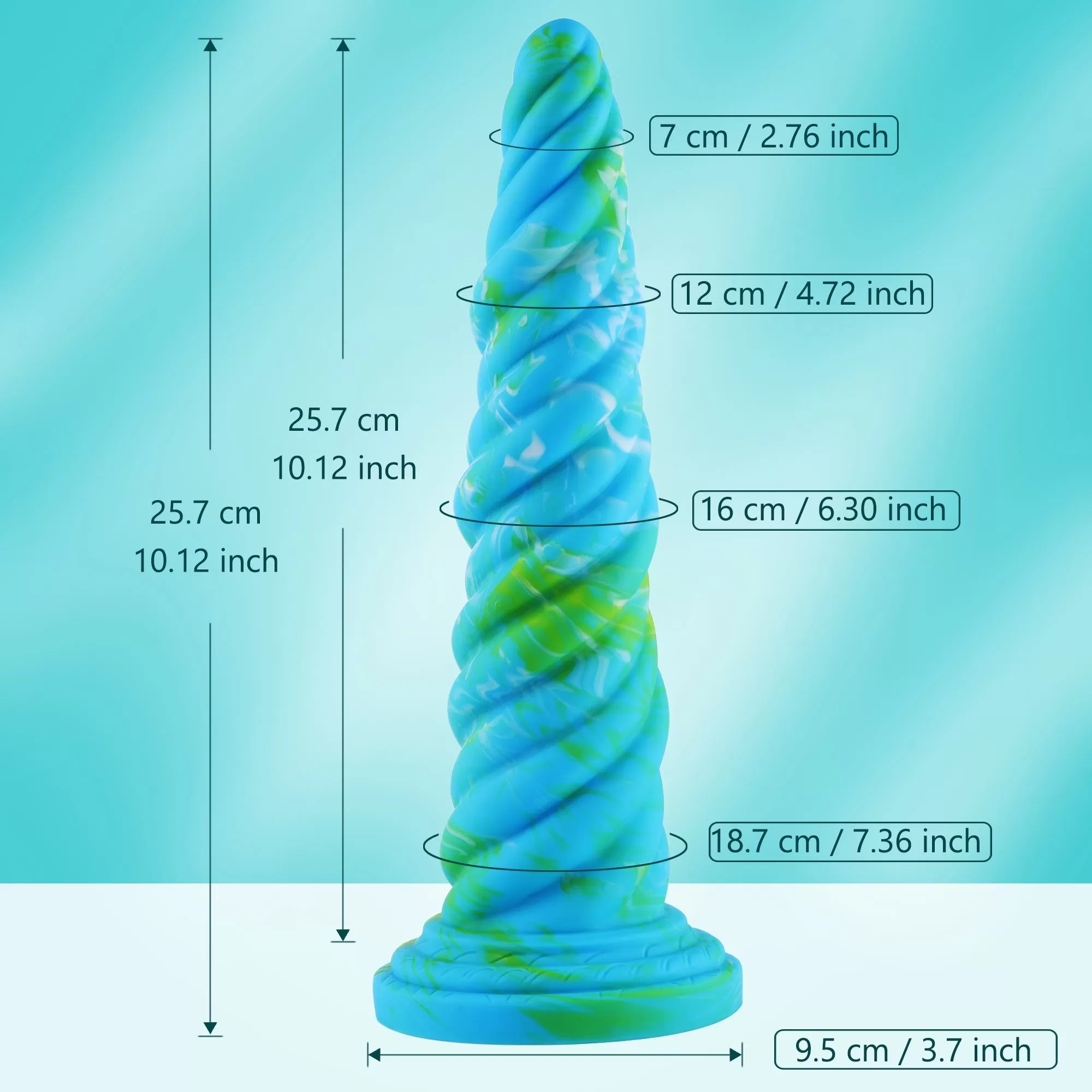 Size: total length: 10.12 inches, insertable length: 9 inches, maximum suction cup diameter: 3.7 inches,