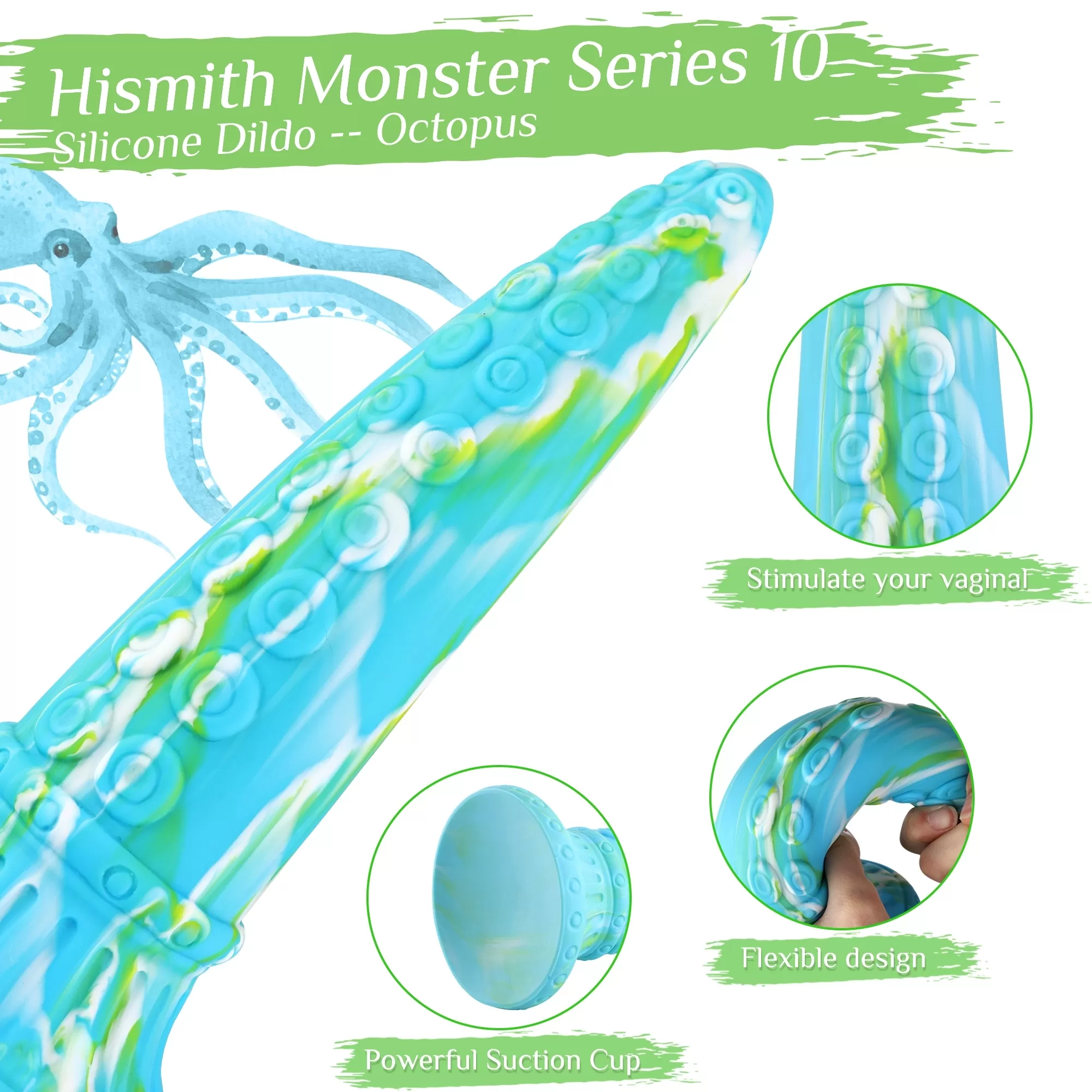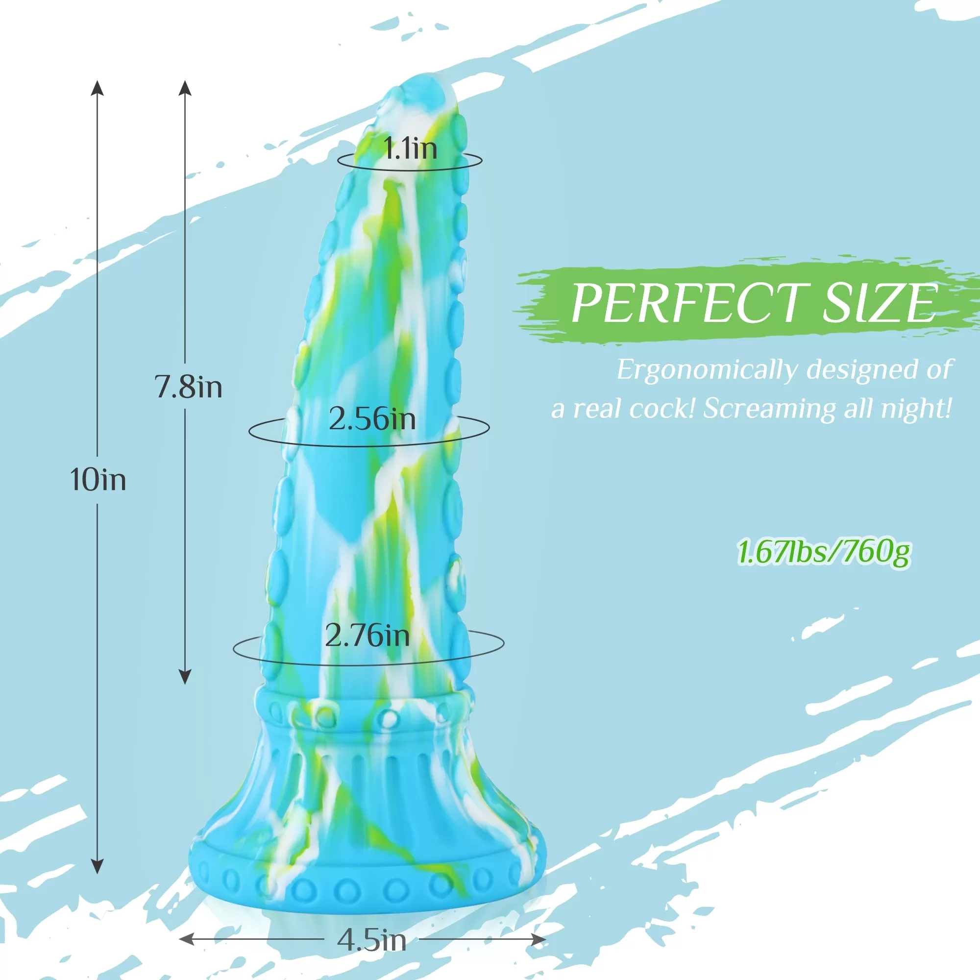 Hismith 10" Silicone Dildo ,7.8" Insertable Length with Suction Cup , L Size