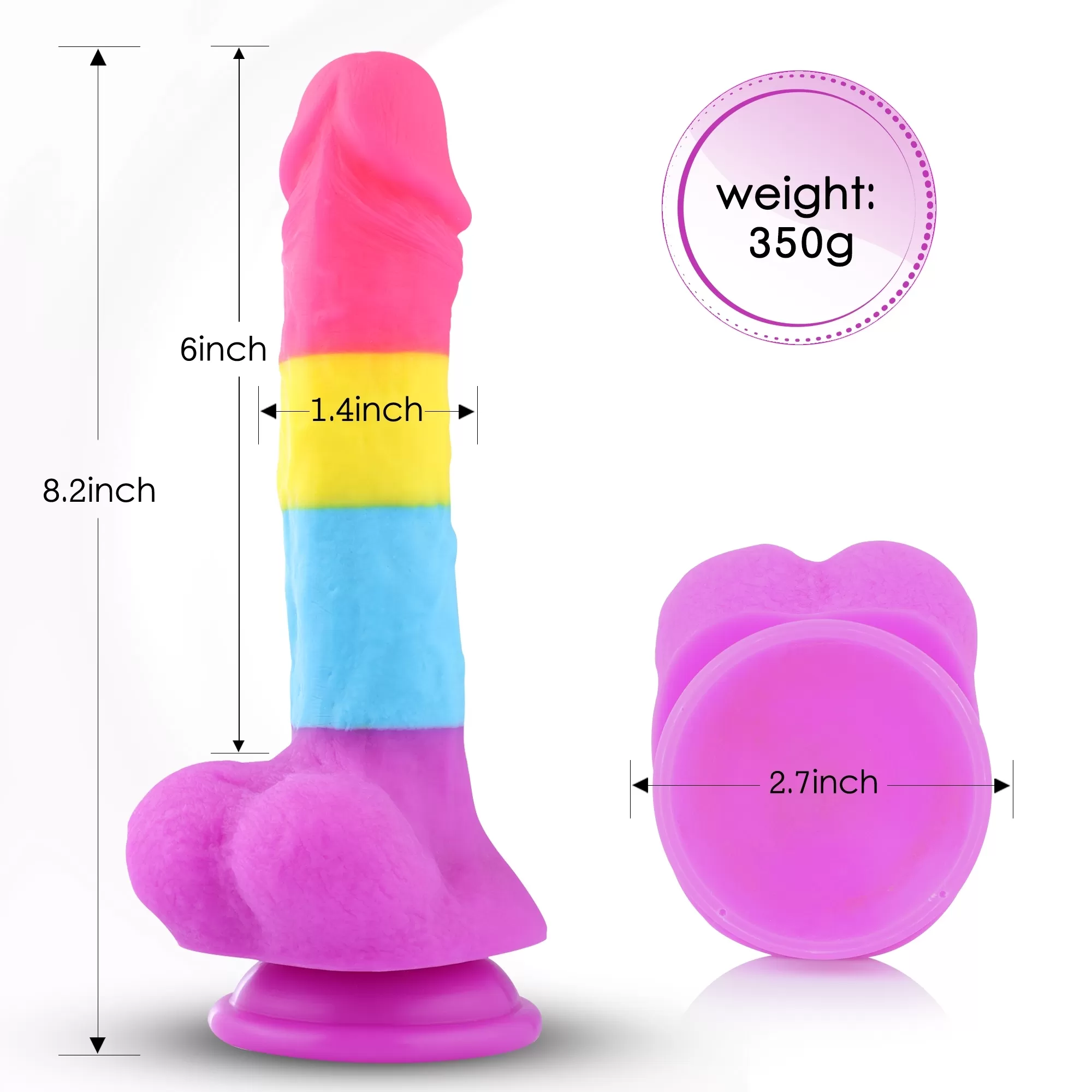 Hismith 8.2" Silicone Dildo ,6" Insertable Length