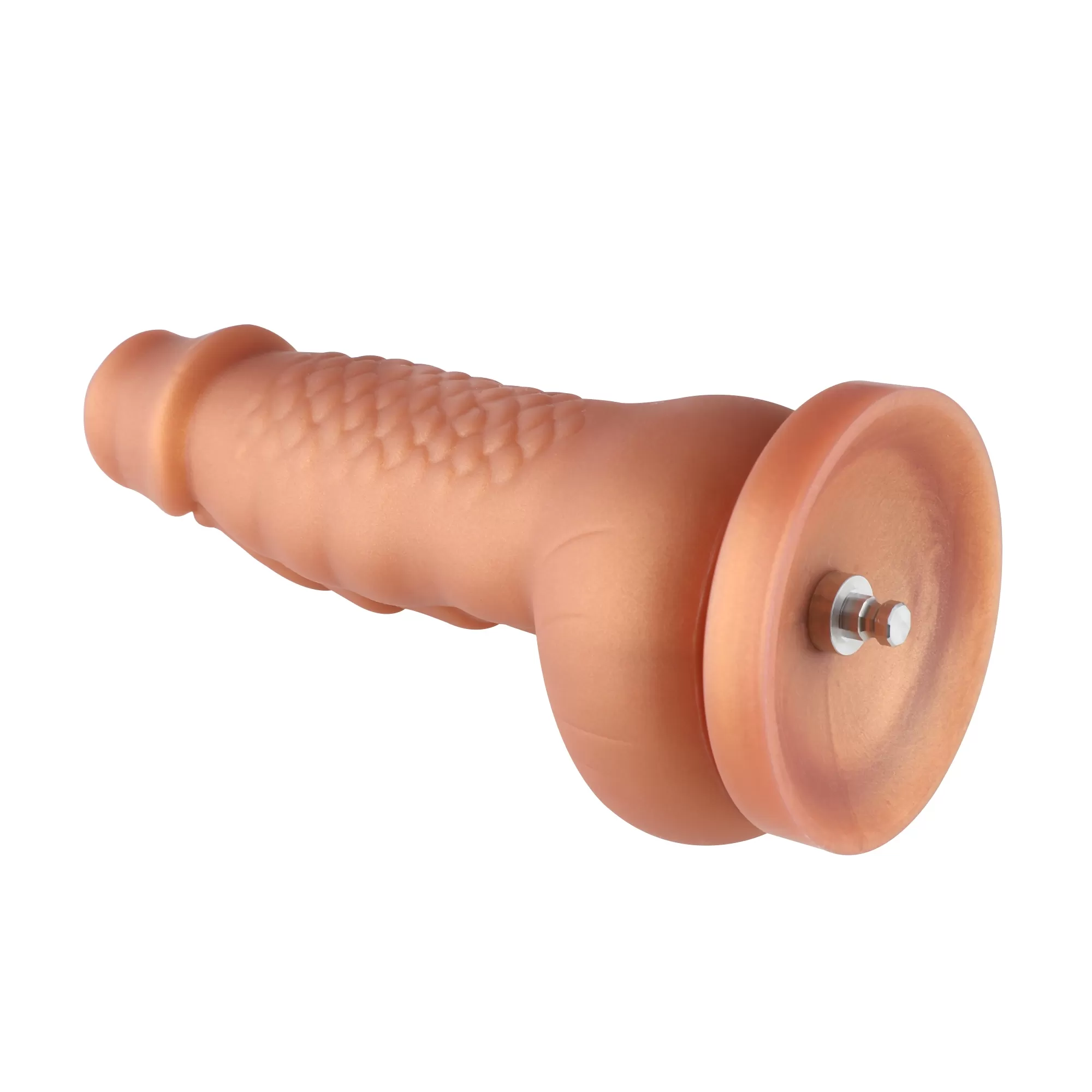 Hismith is a design, development, and production of an integrated company. we focus on high-end sex-machine design and production. Our goal is to help our customers pursuit ultimate pleasure in private life. Our business philosophy is symbiosis and win-win with other brands.This 8.1" silicone dildo has golden color, super soft on the surface, it is designed with squamule for better experience. If you want to have a novel experiences sexual journey, this is your best choice.